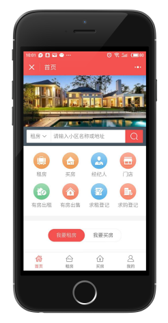 买房者可以查看某一距离的所有房源信息,同时也可以通过发布的功能,发布自己的求购意愿。同时,买房者也可以去浏览相应的经纪人以及房产门店。通过联系门店或者经纪人,电话沟通相应的购房事项。
