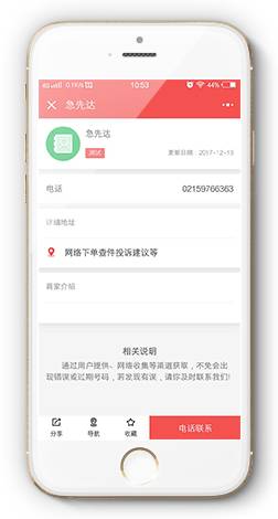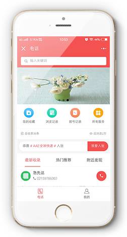一款针对电话展示的小程序,支持入驻,商家或者个人入驻后,信息将会展示在电话本里面,可以一键打电话、收藏电话信息。
