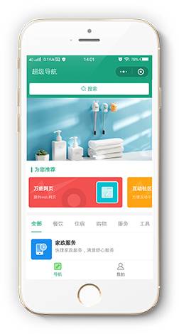 小程序导航全新UI视觉改版,导航轮播、为你推荐、小程序分类,界面更丰富,小程序简介快速了解小程功能,用户体验更优,小程序直接跳转、小程序码长按识别、网页跳转,操作多样化,简单便捷功能更强大。